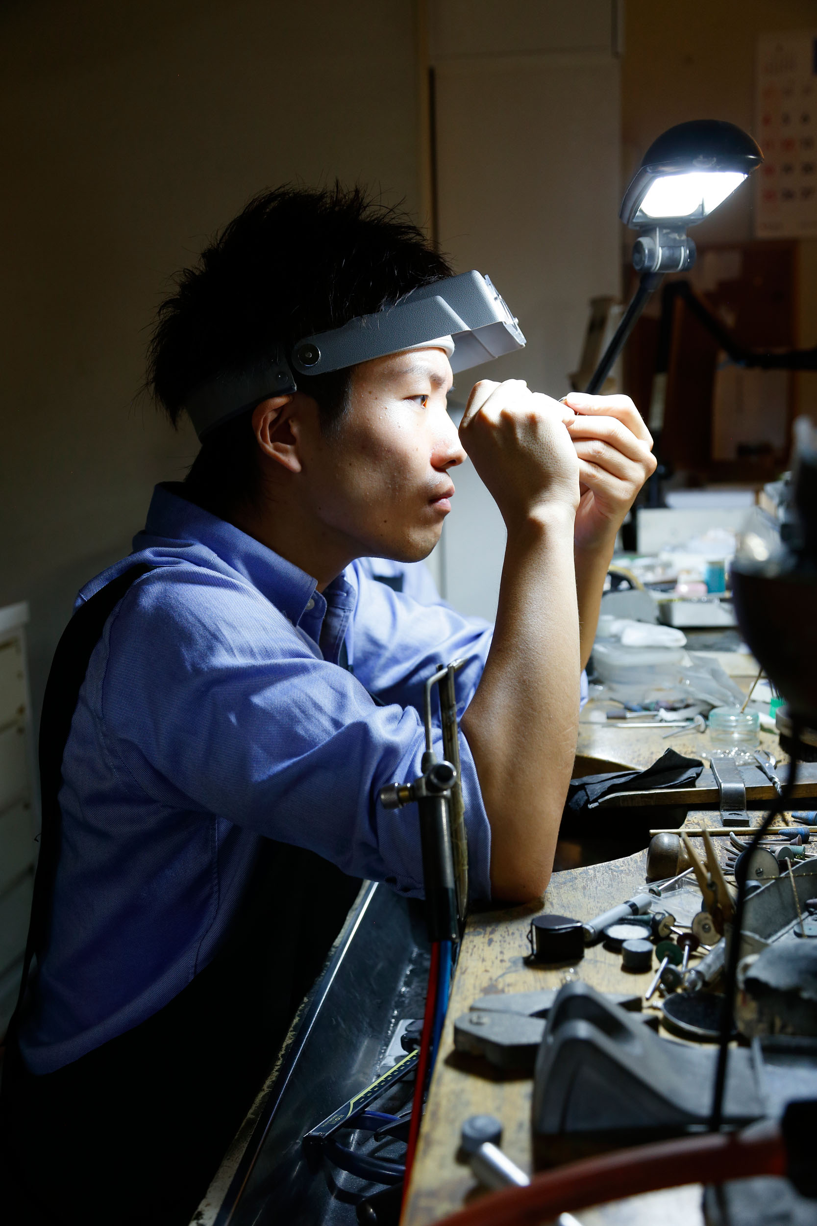 ショップ奥は職人たちが活躍するジュエリーファクトリー。